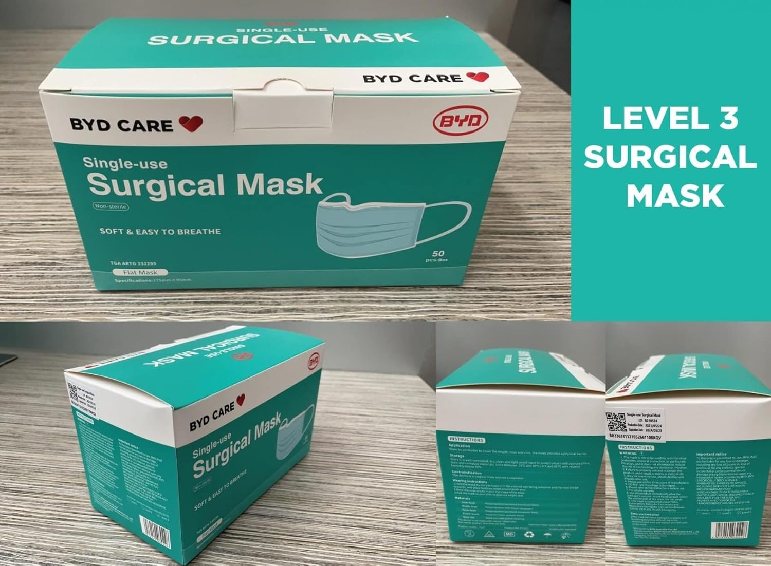 100PCS(2 Box) 3-Layer BYD Blue Disposable Face Masks,Medical Grade ASTM F2100-2019 Level 3 - for Home & Office,Breathable & Comfortable Filter,Adjustable Metal Noseclip,Super Elastic Earloops to Tight