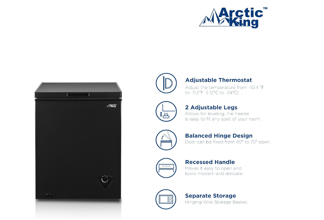 Arctic King ARC050S0ARBB 5.0 Cu.ft Chest Freezer with Removable Basket, Black